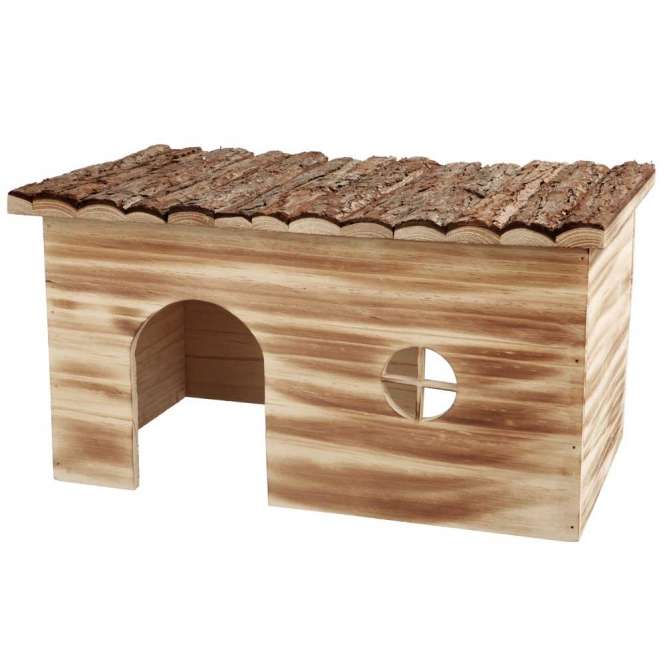 - Das Kleintierhaus Grete aus geflammtem Holz und Dach aus Naturholz sieht nicht nur sehr ansprechend aus, sondern stellt für Ihr Kleintier auch einen optimalen Rückzugsort, sowie einen erhöhten Liegeplatz auf dem Dach dar